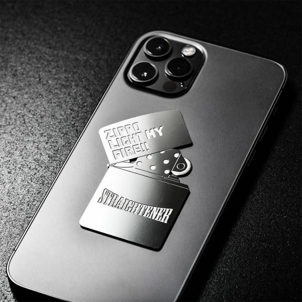 Zippoをモチーフとしたステンレス製プレートのメタルステッカーが付属します。