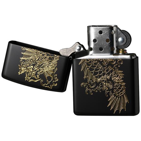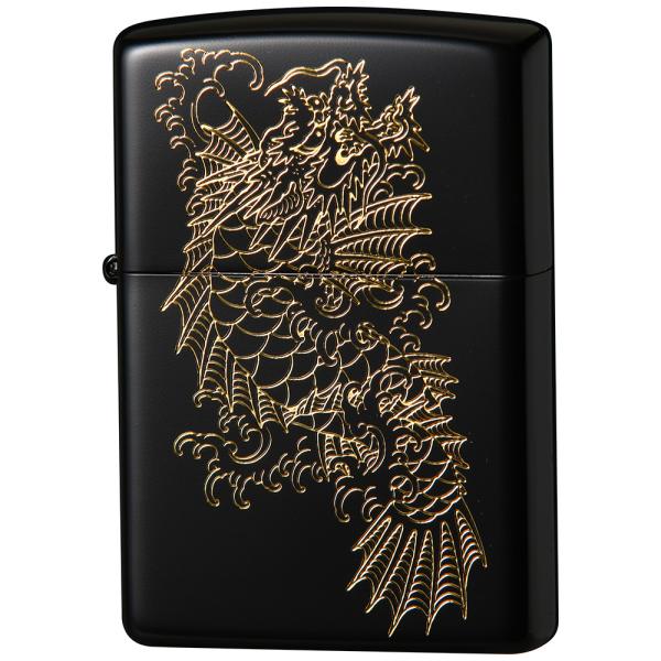 シックなマットブラックのライター表面には、春日一番の背負う龍魚の刺青を、裏面にはゲームタイトルを彫刻しました。