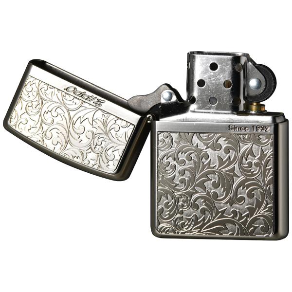 クラシカルなアラベスク模様を前面にあしらった、上品な佇まいのライター。