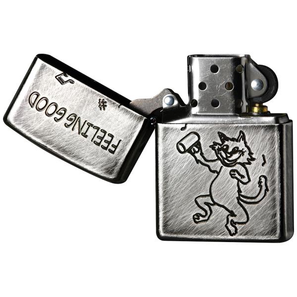 陽気なほろ酔いネコのイラストを刻印したデザインです。